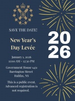 Nova Scotians are invited to attend the 2026 New Year's Day Levée on Thursday, January 1st at Government House. Doors will open from 11 a.m. to 12:30 p.m.